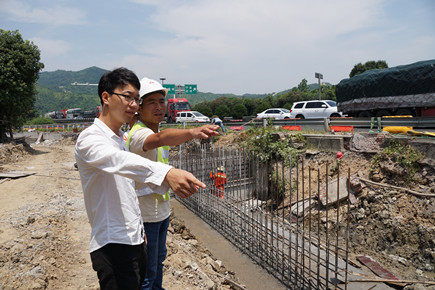 圖為工作人員到溫嶺西收費所車道拓寬現場檢查 烈日炎炎,在黃土嶺隧道現場,工程養護部人員拿著卷尺仔細測量,做好數據記錄,并查看分析路段中一些破損的部位,一個來回下來汗已濕透衣背。隨后,一行人趕往臺州南收費所鋼結構施工現場,查看施工進展情況,要求施工單位緊盯合同工期,加強施工管理,同時一再強調施工中要做好防暑降溫工作,避開高溫時間段施工,注重高溫作業安全。 近期,工程養護部現場管理人員時常頭頂烈日奔赴各施工現場監工,查看路段護坡、路肩墻、防塵網施工情況,定時巡查溫嶺西車道拓寬工程進展,督促各收費所裝修工程早日完工,沿線查看黃土嶺山體排水改造工程施工成果等。在查看施工進展的同時,他們還在現場宣傳高溫酷暑安全防范的重要性,嚴抓工程質量與安全。 李夢君