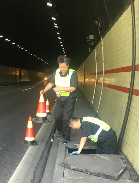 8月3日,公司機(jī)電設(shè)備維養(yǎng)中心主任助理葉俊帶領(lǐng)三名隊(duì)員,頂著高溫,對(duì)塘嶺溫向隧道北洞口路燈電纜進(jìn)行了重新鋪設(shè),讓隧道口罷工多日的9盞路燈重放光明,有效保障了夜間行車安全。 塘嶺隧道全長(zhǎng)935米,于1997年底投入使用。為給夜間司乘人員提供明亮安全的通行環(huán)境,公司在塘嶺雙向隧道入口約100米位置各安裝了一排路燈,每隔10米一盞,共計(jì)9盞。前不久,溫向隧道路燈900余米的供電電纜遭不法分子盜取,導(dǎo)致9盞路燈集體罷工,如不及時(shí)修復(fù)將給過往車輛帶來安全隱患。