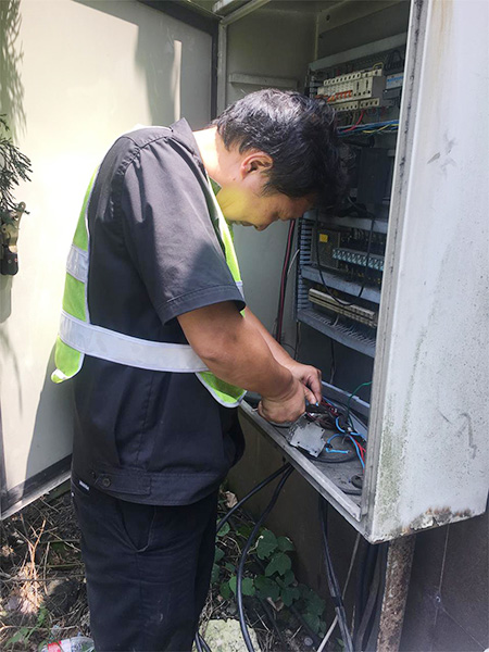 圖為修復(fù)后的隧道口路燈 對(duì)于修復(fù)被盜電纜,一般最直接的做法是重新再拉一根新電纜至配電箱,利用箱內(nèi)現(xiàn)成的控制開關(guān)和交流接觸器等元器件,完成整個(gè)電纜連接工作,但中心隊(duì)員考慮到此種方法不僅工作量大,修復(fù)成本高,而且存在再次被盜的可能性,如果用鋁線代替,電力傳輸又要大打折扣。于是,他們另辟蹊徑,計(jì)劃從剩余配電箱至路燈還有200余米未被盜取的電纜中截取一段,直接和洞口情報(bào)板電纜相接,這樣既能節(jié)省人力、物力,又能以最快速度恢復(fù)路燈正常工作。 當(dāng)天一早,中心隊(duì)員帶上相應(yīng)的工具和設(shè)備直奔現(xiàn)場(chǎng),在確認(rèn)電纜位置及走向后,便著手抽離洞內(nèi)電纜。考慮到洞口到配電箱電纜至少有100余米,電纜溝下面又鋪有其他眾多電纜以及之前掉落的垃圾,直接從洞口抽離根本無法動(dòng)彈。于是,中心4名隊(duì)員便每隔10米左右用撬棍撬開上面水泥蓋板,整個(gè)人跳進(jìn)電纜溝內(nèi),彎著腰一段一段抽離。抽到最后一個(gè)溝時(shí),4人頂著烈日,齊力把重達(dá)近百斤電纜抽離整個(gè)電纜溝并放置在護(hù)欄內(nèi)側(cè)草地上,隨后再?gòu)某槌龅倪@段電纜中剪取適當(dāng)長(zhǎng)度,重新鋪設(shè)后與寧向出洞口的情報(bào)板電纜相接。 臨近中午,戶外溫度不斷升高,中心隊(duì)員早已濕透衣背,為趕在一天中最熱的時(shí)間點(diǎn)前完成任務(wù),4名隊(duì)員臨近解決午餐又迅速奔赴現(xiàn)場(chǎng),拆除原配電箱內(nèi)的舊器件,將其用回到新的供電線路中,而多余的器件則捆綁打包帶回中心以留備用,節(jié)省公司后期維養(yǎng)成本。 下午1:40,經(jīng)過通電測(cè)試,9盞路燈全部恢復(fù)正常工作。集團(tuán)總工程師江輝在工程部微信群里肯定了中心工作,并提醒一線人員切記做好防暑降溫工作,注意自身身體狀況。