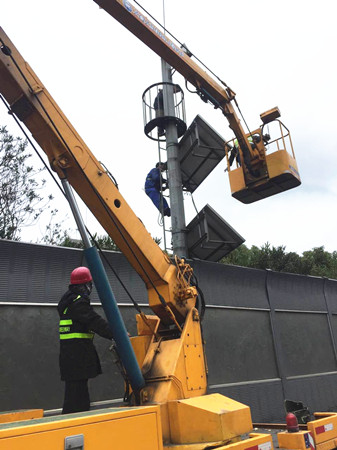 上圖為更換太陽能板現場 為盡快解決這一問題,中心聯系三家太陽能板供應商,通過對性能、價格、服務等多方面比較后,最終選定杭州一家單位負責此次太陽能板供貨、拆除及安裝工作。1月24日,設備到貨,但同時也碰上了今年入冬以來最強冷空氣。可若不及時更換,勢必會影響春運安全行車。 面對困難,中心隊員并未退縮,每天起早摸黑,帶領安裝人員親赴施工現場,負責監管和預警工作。每當路面飛駛而過的車輛帶起陣陣寒風,吹的隊員瑟瑟發抖時,施工人員都會勸說隊員回車上休息,但都被謝絕了,不僅依舊緊盯施工進度和質量,還協助他們一起拆卸和搬運。在大家共同努力下,所有破損太陽能板在不到3天的時間里被拆卸和更換,比預定時間提前了整整一天。 更換后的新太陽能板最大輸出功率較之前提高了15%,這將大大提升太陽能板對蓄電池充電效率,保證監控云臺有效運轉,為高速的安全暢通保駕護航。 項寅曉