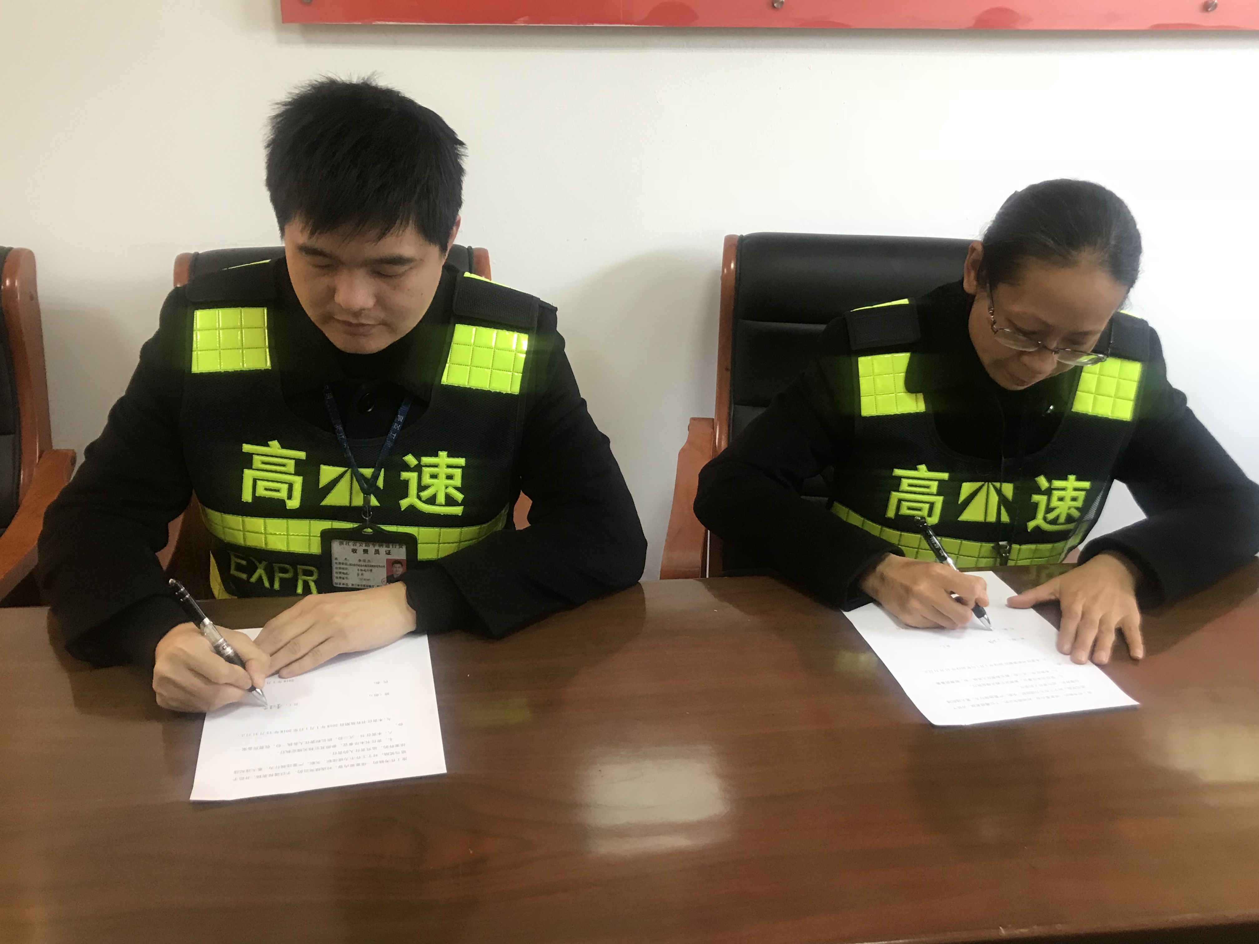 圖為黨支部書記與班長簽訂黨風廉政責任書