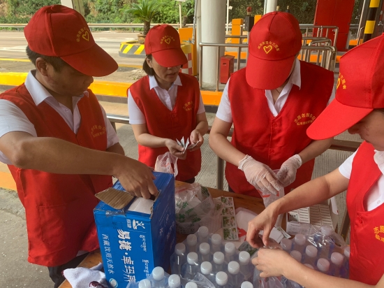 圖為志愿者在準(zhǔn)備防暑物品 “師傅,辛苦啦!這袋子里有礦泉水、風(fēng)油精、人丹一些防暑物品,您拿好,路上帶著以備不時(shí)之需!” “沒(méi)想到,你們收費(fèi)站還有這個(gè)服務(wù),這次我要出趟遠(yuǎn)門,說(shuō)不定路上還真能用的上,謝謝呀!”一位接過(guò)禮品袋的老師傅連聲道謝。
