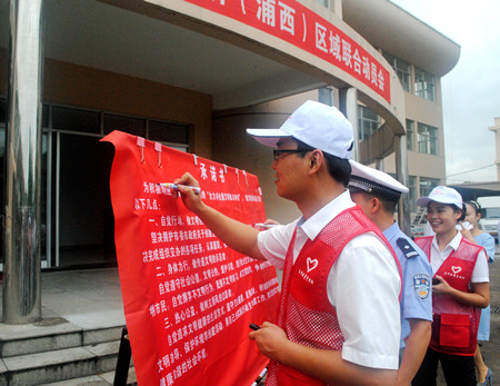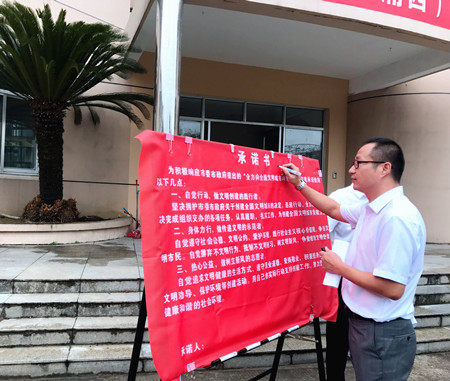 圖為公司副總經理章海峰在承諾書上簽名 章海峰要求大家充分認識創建全國文明城市的重要性,立足崗位,樹窗口形象,展行業新風,用自己的實際行動支持創建工作。此次創建工作,時間緊、任務重,需要全體人員迅速行動起來,從我做起,從細節做起,從點滴做起,逐層壓實責任,確保萬無一失。文明城市創建工作不僅僅是政府的事,更是全體市民的事,也直接體現了一個城市的幸福指數,大家要以“一流的城市環境、一流的公共秩序,一流的服務水平、一流的精神面貌”迎接測評。