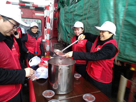 圖為志愿者給司機送上印有出入平安的“福”字 按照傳統,臘八節這天該喝上一碗匯聚著五谷雜糧的臘八粥,可以在冬日暖身暖心,更是對寒冷歲末的美好祝愿。臺州收費所提前幾天就采購好了制作臘八粥的材料:糯米、黑米、薏仁、紅豆、大白蕓豆、蓮子、紅棗、枸杞等,食材足足浸泡了一夜,食堂工作人員從凌晨四點便開始制作,足足熬煮三、四個小時,熬出了四大鍋的臘八粥,出鍋的臘八粥濃稠軟糯、色香味俱佳。 在志愿服務現場,志愿者們個個身穿統一的紅背心,頭戴白色帽子,面帶微笑,在寒風中迎送來往車輛,送上的不僅僅有臘八粥,還有暖心的姜茶,更有溫馨的祝福!