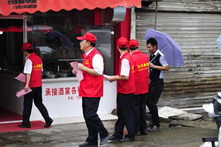 圖為志愿者隊合影 由部分非當班黨員,青年團員組成的第一支志愿小分隊,趕赴沙埠鎮(zhèn),與沙埠鎮(zhèn)鎮(zhèn)政府一起開展創(chuàng)建全國文明城市的宣傳活動。小分隊統(tǒng)一身著印有的 “臺州高速臺州南收費所志愿服務(wù)隊”的紅色馬甲,在沙埠鎮(zhèn)有關(guān)同志的陪同之下,冒雨沿街分發(fā)創(chuàng)建全國文明城市的宣傳資料,并逐一耐心講解創(chuàng)建工作的有關(guān)注意事項。 沙埠鎮(zhèn)沿街衛(wèi)生秩序較好,但局部角落還是存在一定的臟、亂問題,通過鎮(zhèn)工作人員和志愿者們的勸導,群眾們紛紛表示要響應(yīng)創(chuàng)建全國文明城市的號召,從自身做起,為創(chuàng)建出一份力。 王樹聲