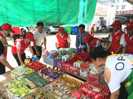 7月5日上午,在烈日炎炎下,一群耀眼的“紅馬甲”沿街邊走邊向周邊的商鋪小攤,宣傳文明創建小攤街邊擺放要求,并幫助他們一起整理物品。