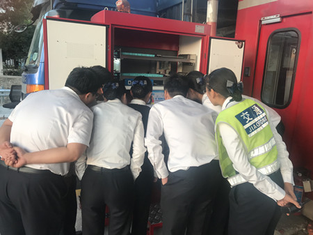 圖為工作人員在現場學習自動發卡機的操作功能