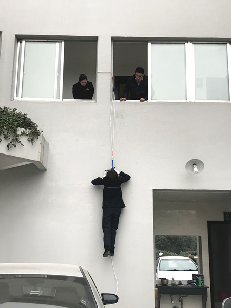 圖為高處逃生演練現(xiàn)場(chǎng) 理論培訓(xùn)結(jié)束后,溫嶺西收費(fèi)所隨即開(kāi)展實(shí)地逃生演練,讓員工學(xué)習(xí)使用逃生繩從高處逃生的技能。在蔡教官的指導(dǎo)下,一名收費(fèi)員大膽地自我推薦,主動(dòng)嘗試此自救方法。 一切準(zhǔn)備就緒,該收費(fèi)員迅速爬上窗戶,利用逃生繩小心地沿著墻壁下滑,并順利落地。教官最后根據(jù)演練情況作點(diǎn)評(píng)。 此項(xiàng)技能有助于在火災(zāi)時(shí)多開(kāi)辟一條逃生通道,減少人員傷亡。 通過(guò)此次全面的培訓(xùn)演練,溫嶺西收費(fèi)所將全力共抓消防安全工作,排除各類(lèi)隱患。 鄭霞霞