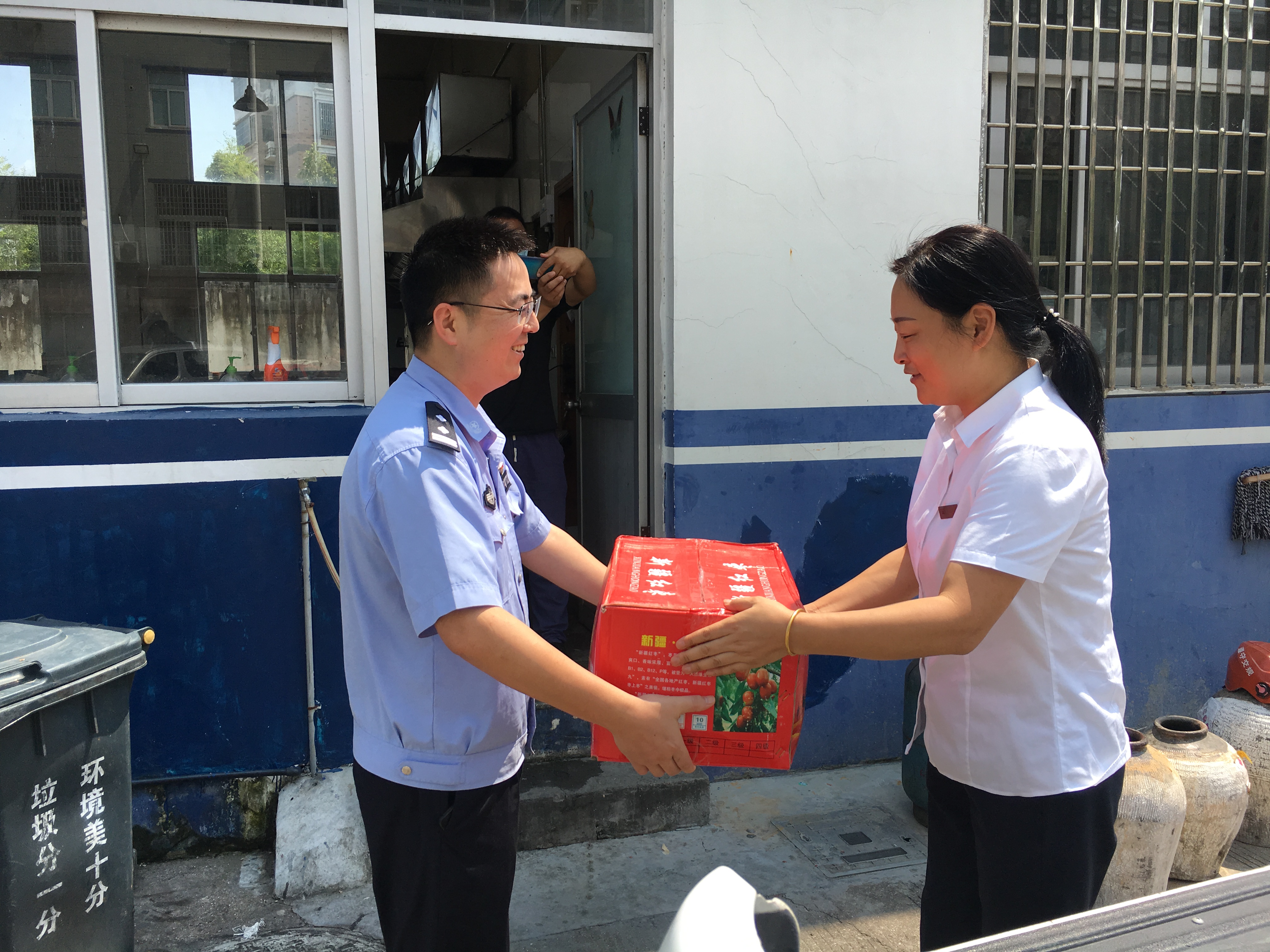 圖為楊瑩瑩給民警送上清涼物資 連日來(lái),全市持續(xù)高溫,熱浪滾滾,進(jìn)入酷暑“燒烤”模式,高溫烈日下,廣大民警、輔警舍小家、顧大家,堅(jiān)守在一線崗位上,楊瑩瑩囑托民警、輔警們?cè)诟邷靥鞖鈭?zhí)勤中一定要注意身體。 大溪派出所所長(zhǎng)代表全體民警對(duì)臺(tái)州高速溫嶺西收費(fèi)所的慰問(wèn)表示感謝,同時(shí)表示所將一如既往做好本職工作,不負(fù)期望,在今后的工作中再接再厲,為營(yíng)造更加和諧、穩(wěn)定的社會(huì)環(huán)境繼續(xù)努力。 鄭霞霞