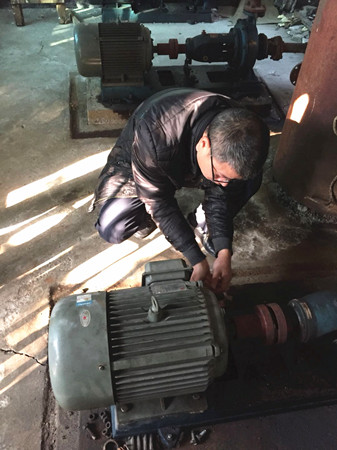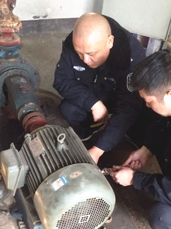 圖為工作人員修理水泵電機現(xiàn)場 因設(shè)備比較陳舊,而且原圖紙等資料不全,構(gòu)造原理無從了解,黃土嶺隧道所所長助理金衛(wèi)軍帶領(lǐng)執(zhí)勤隊,一邊推測,一邊根據(jù)水泵工作原理和電器修理經(jīng)驗尋找故障點,對設(shè)備可能出現(xiàn)的問題進行反復(fù)推敲,逐一排查,最終確定為上水位控制繼電器觸點接觸不良造成導(dǎo)電故障。經(jīng)過對觸點的調(diào)整和修復(fù),以及對軸承部位進行加油和電機、水泵平衡重新調(diào)節(jié)后,設(shè)備之前出現(xiàn)的電機震動、聲音異常現(xiàn)象和無法自動進水等問題被一一解決,消防水泵恢復(fù)正常運作。 此次檢修工作不僅及時消除了安全隱患,確保設(shè)備隨時處于良好的待命狀態(tài),在檢修的過程中,也為隊員開展了一次良好的技術(shù)培訓(xùn)。 毛譯聆
