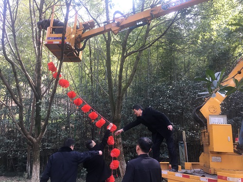圖為掛好的燈籠 過年掛燈籠是中國古老習俗,紅色代表喜慶,圓形燈籠寓意團圓美滿。該所工作人員利用午休時間自制大紅燈籠750盞,并拿線連成串,大家借來登高車將燈籠掛在綠蔭道兩旁以及公路下方車輛經過的地方。遠觀這掛好的燈籠,一片紅火,形成春節期間一道亮麗的風景線。 一盞盞紅彤彤的燈籠將隧道所裝點得十分溫暖、祥和,注入了濃濃的年味和活力,同時也寄予了大家對新年美好的希望與祝福,希望往來的司機都能接收到這份祝福,過個平安祥和的幸福年。 毛譯聆