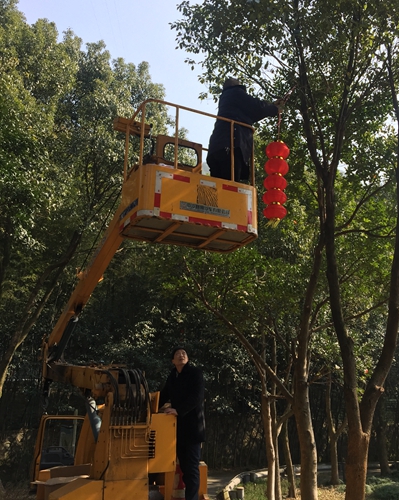 圖為黃土嶺隧道所員工合影 “往左往左,站臺再下降一點。”金先華麻利地操作著登高車,“爬樹高手”金美忠自然地肩負(fù)起了懸掛燈籠的任務(wù),而個子高高的廖科則負(fù)責(zé)遞燈籠,其它人員有的負(fù)責(zé)將燈籠系好鐵絲,有的負(fù)責(zé)扛梯子,有的則不時地在遠(yuǎn)點兒的位置仔細(xì)看燈籠掛得正不正, 兩個燈籠高度是否一致,對聯(lián)是否對齊等等。大家有說有笑,忙得不亦樂乎! 不一會兒工夫,喜慶的春聯(lián)貼起來,紅紅的燈籠串掛起,管理所員工在一片喜氣的歡樂氛圍中共同期待著的新年的到來! 林 玲