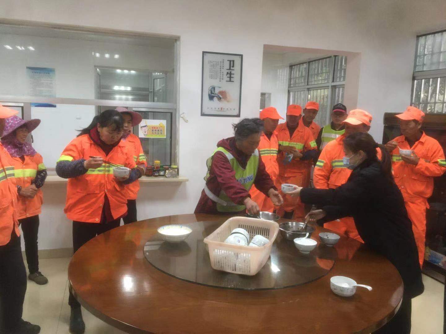 上午十點左右,盧所把工人們迎到食堂,熱情的招呼著大家。當班的隊員們把一碗碗熱乎乎的臘八粥送到養護工人們的手中,吃著這冬日里的熱粥他們臉上露出了由衷的笑容。 下午,從公司匆匆趕回來的應所帶領隊員們對隧道的清洗情況進行了驗收,肯定了養護工人們的勞動成果,并表示了親切的慰問,同時把一幅幅春聯親自送到了他們的手中。