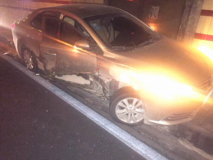 6月27日18點20分,大溪嶺隧道寧向3500KM處超車道有一轎車撞上隧道壁,中控員立即啟動應急預案。