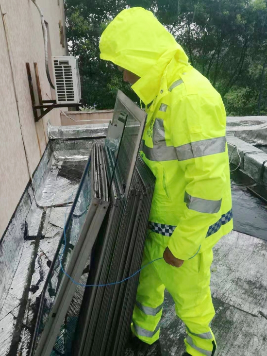 圖為工作人員捆扎散落的物品 8月9日上午,超強(qiáng)臺(tái)風(fēng)帶來強(qiáng)降雨,大溪嶺隧道所隊(duì)員們做好一切防臺(tái)準(zhǔn)備,備好發(fā)電機(jī)所需燃油,保證所有車輛車況良好并加滿油;充分備好繩索、應(yīng)急燈、雨衣雨靴、藥品、食物等防臺(tái)物資;檢查各類通訊線路,確保內(nèi)部通訊電話、報(bào)警電話等重要線路暢通;放下北廣場(chǎng)的二高桿燈。隊(duì)員們爬到屋頂,對(duì)散落的物品進(jìn)行捆扎,并疏通堵塞的排水管,確保排水設(shè)施良好。所有人員全力做好防臺(tái)部署工作和防御措施,確保大溪嶺隧道一切設(shè)備正常運(yùn)行,隧道平安暢通。 陳智慧