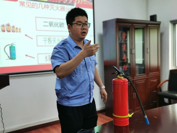 圖為楊金德示范滅火器操作方法 基于隧道所工作場所配備的二氧化碳和水基滅火器,楊金德再次示范了滅火器的操作方法,又介紹了水基本滅火器的工作原理,它在噴射后,成水霧狀,瞬間蒸發火場大量的熱量,迅速降低火場溫度,隔離氧氣,從而達到快速滅火的目的。 培訓課中,一則則鮮活的案例警示大家,火災之患不容忽視,安全生產要做到“防災結合,預防為主”,火災的初期是最佳救援時機,家里、車上、單位都應配備滅火器及其他滅火設備,而且還要會使用。不要讓屏幕上的悲劇多次重演,人人要時刻敲響安全警鐘, 陳智慧