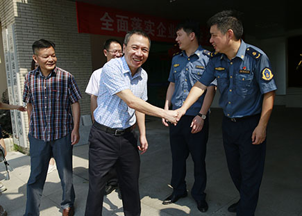 “你們辛苦了!這么熱的天堅守在崗位上,我代表公司感謝你們!”7月25日上午,公司領導分組走訪慰問各所、中心、子公司,公司副董事長、總經理張建平冒著40度的高溫,帶領副總經理董阿林、工會主席項義超等慰問內環路(黃巖段)項目四標工作人員。