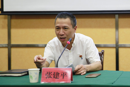 圖為集團(tuán)黨委副書記、總經(jīng)理張建平傳達(dá)王昌榮書記講話精神