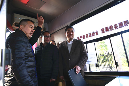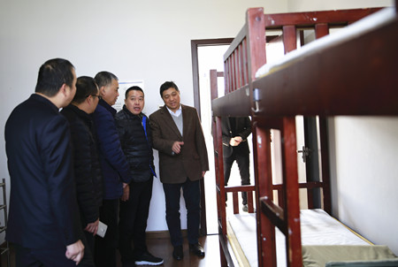 圖為市行政服務(wù)中心黨委副書記金偉一行在員工寢室參觀