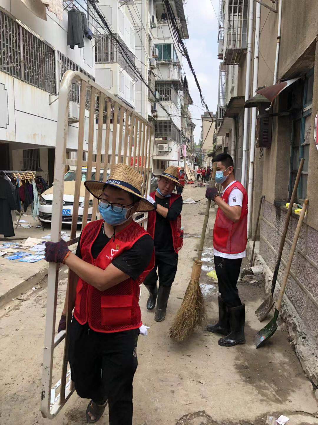 圖為臺州高速志愿者支援災區重建現場 在臨海古城赤城路米篩巷,臺州高速集團的志愿者們頂著毒辣的太陽,不怕臟不怕累,積極為災后重建貢獻力量,清理路面淤泥、垃圾,保障路面清潔以及道路順暢。 真情傳遞溫暖 愛心匯聚力量, 面對災后重建, 臺州高速集團用實際行動, 彰顯鐵軍精神, 承擔社會責任, 展現使命擔當。