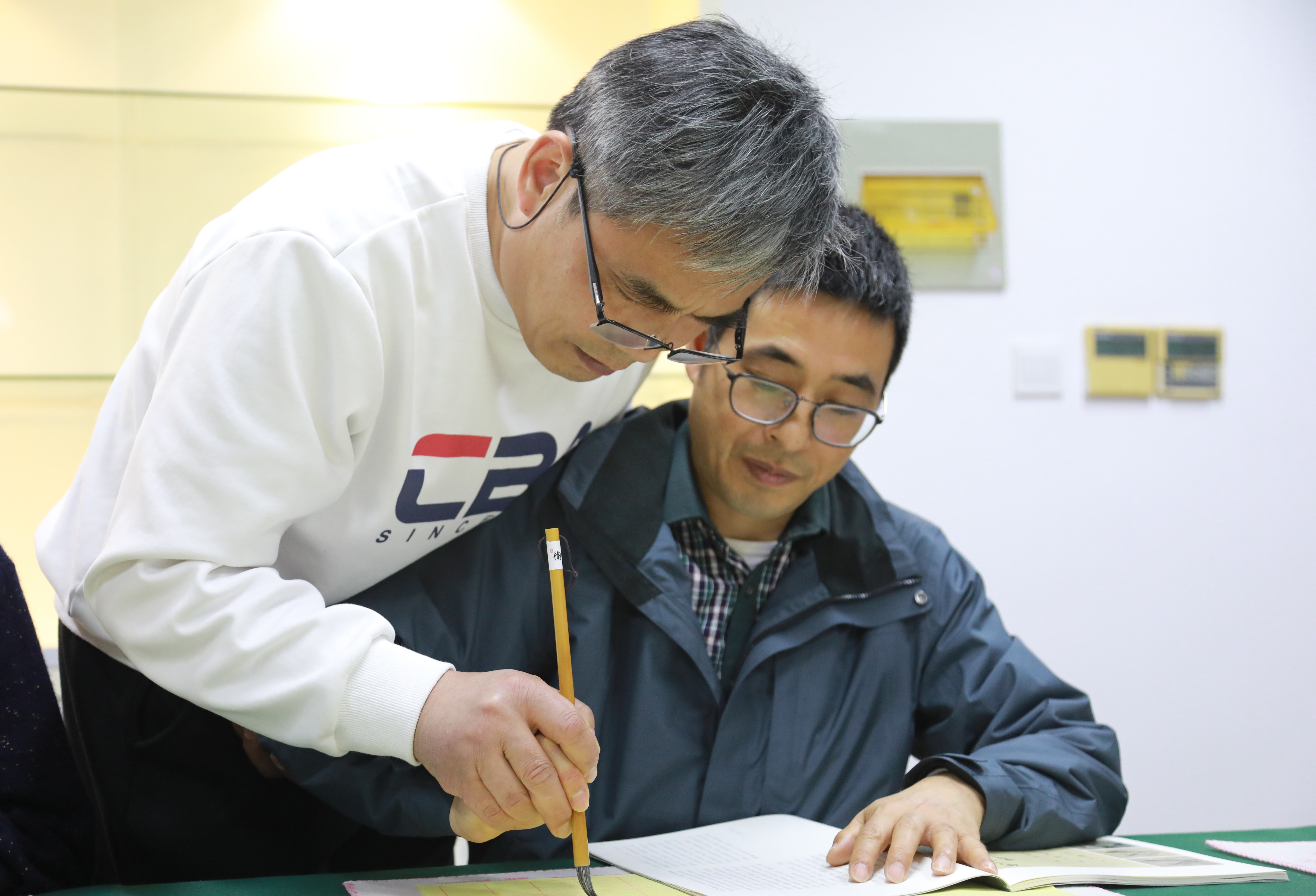 4月13日晚上,公司20樓書法培訓(xùn)班上,書法興趣小組成員濟(jì)濟(jì)一堂,一個(gè)個(gè)正襟危坐,手執(zhí)毛筆,在一張張書法訓(xùn)練紙上認(rèn)真地劃著線條,邊上專業(yè)書法培訓(xùn)教師陳士春一個(gè)個(gè)輪流手把手教學(xué),幫助大家感受毛筆的運(yùn)力技巧、筆尖鋪毫要點(diǎn)及筆尖和紙之間的觸感。培訓(xùn)現(xiàn)場(chǎng)氣氛濃厚,老師用心講課,既有理論解讀,又有實(shí)踐指導(dǎo),學(xué)員們用心領(lǐng)悟,認(rèn)真練習(xí),現(xiàn)場(chǎng)呈現(xiàn)出教學(xué)相長(zhǎng)的良好氛圍。