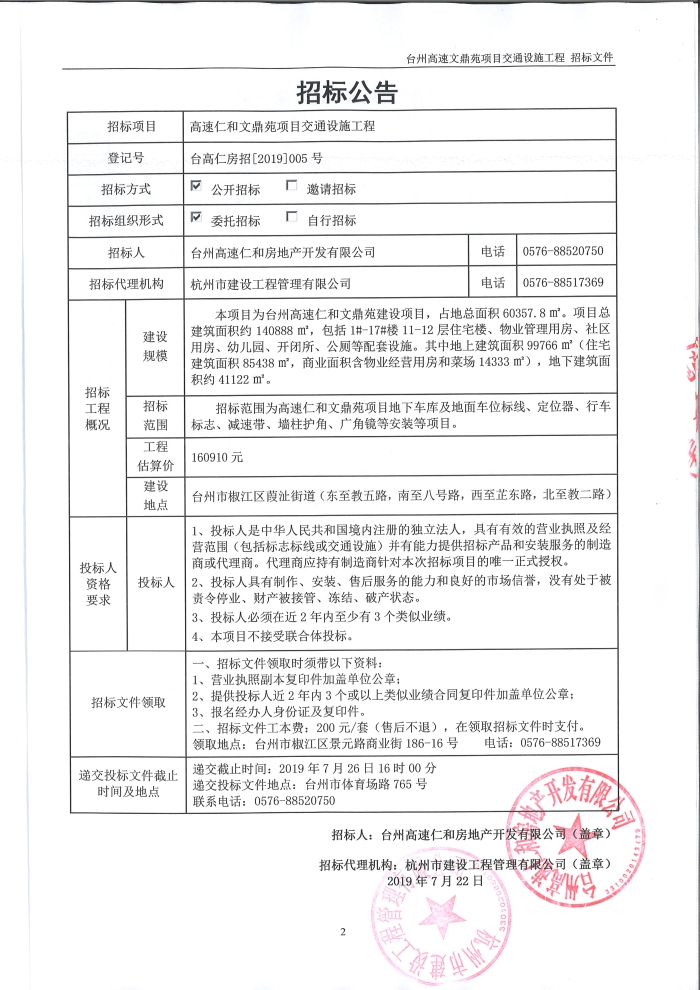 高速仁和文鼎苑項目交通設(shè)施工程招標公告