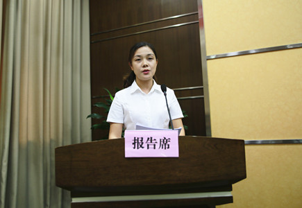 圖為公司工會主席項義超宣讀議案,作為總監票人宣讀投票表決結果