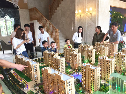 圖為客戶前來參觀文鼎苑樓盤效果圖