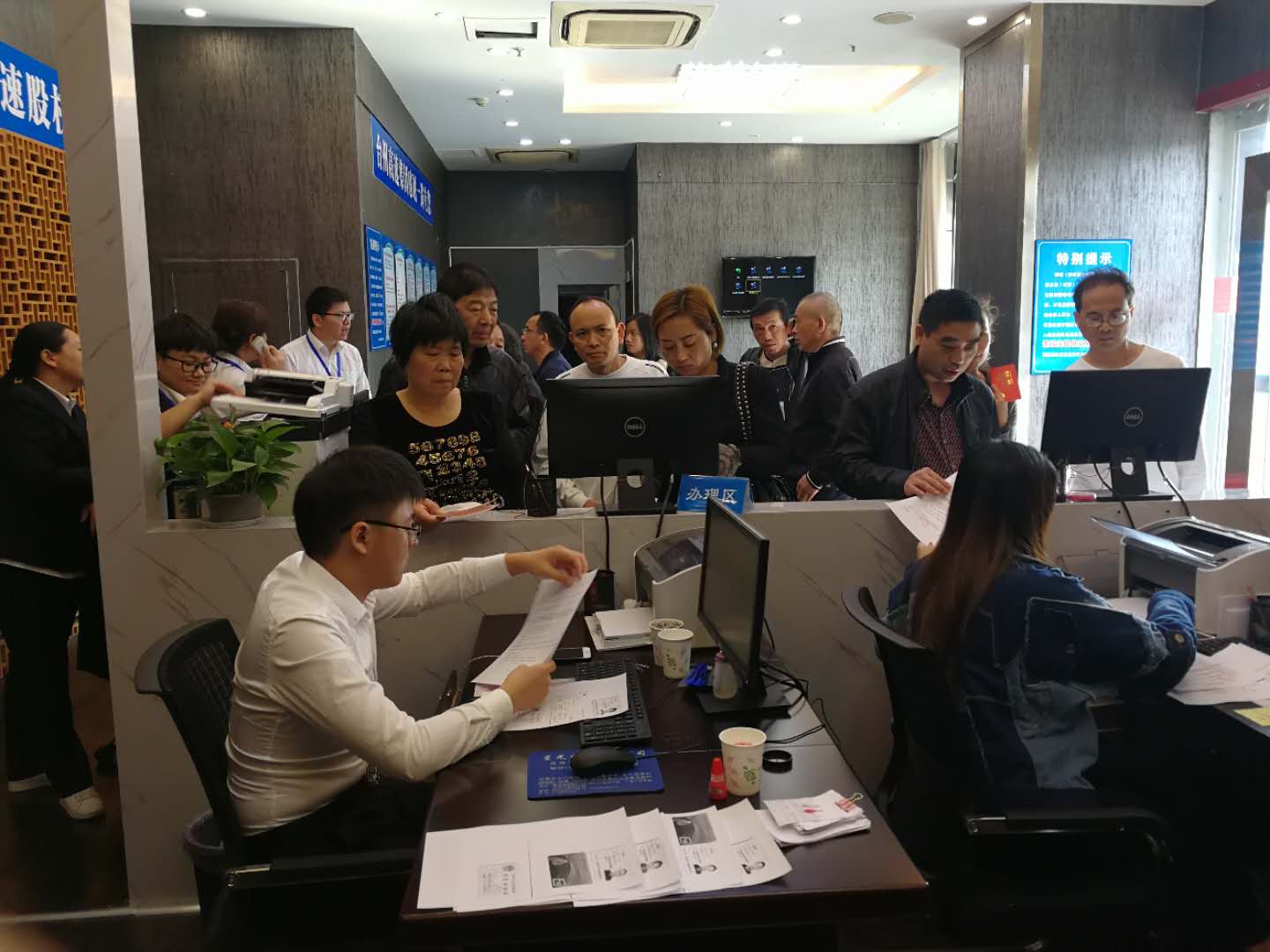 圖為溫嶺收購點負責人向股民講解收購事宜 10月26日上午11時許,水利局陳慧女士為自己辦理股權轉讓的同時,還帶來6位她的同事的業務,把資料帶得很齊全,一個個分得清清楚楚。 當工作人員感謝她這么熱心的幫忙時,她說這些是之前的同事的,他們現已調離水利局工作。過些天,她還會前來為現在的同事辦理代辦轉讓業務。 無獨有偶,溫嶺國稅局辦公室主任黃榮軍,自9月8日股權收購開始以來,積極響應號召,每次溫嶺收購點工作人員朋友圈轉發的有關股權轉讓的信息他都會積極轉發,不僅自己主動帶頭轉讓,還動員身邊持股的工作人員和親戚朋友早日轉讓高速股權,儼然成了溫嶺收購點的常客,前后為單位同事辦理手續達4次之多,共辦理90多筆約5萬股轉讓業務。 我們為黃榮軍、陳慧這樣熱心股民點贊,感謝他們對股權收購工作的支持! 顏優芬
