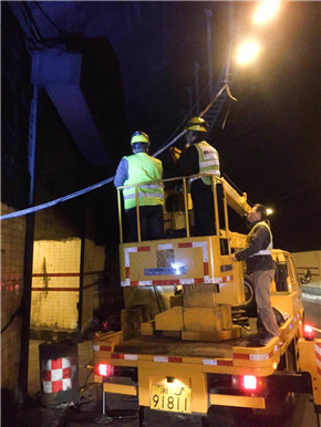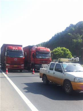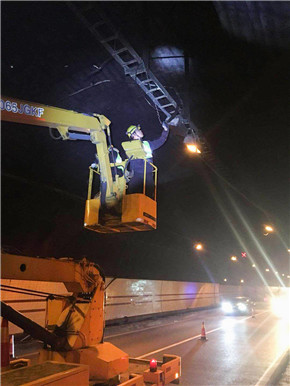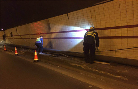 此時此刻,維養(yǎng)中心值班同志已經(jīng)馬不停蹄地奔往現(xiàn)場,中心負(fù)責(zé)人從臨海速度趕往現(xiàn)場。經(jīng)檢查,掛落電纜系汽通門控制線,不影響隧道內(nèi)照明、通訊系統(tǒng)的正常運(yùn)行。當(dāng)機(jī)立斷,決定采取臨時加固的緊急措施,及時聯(lián)系協(xié)調(diào)交警部門,請求封道施工的幫助和支持。