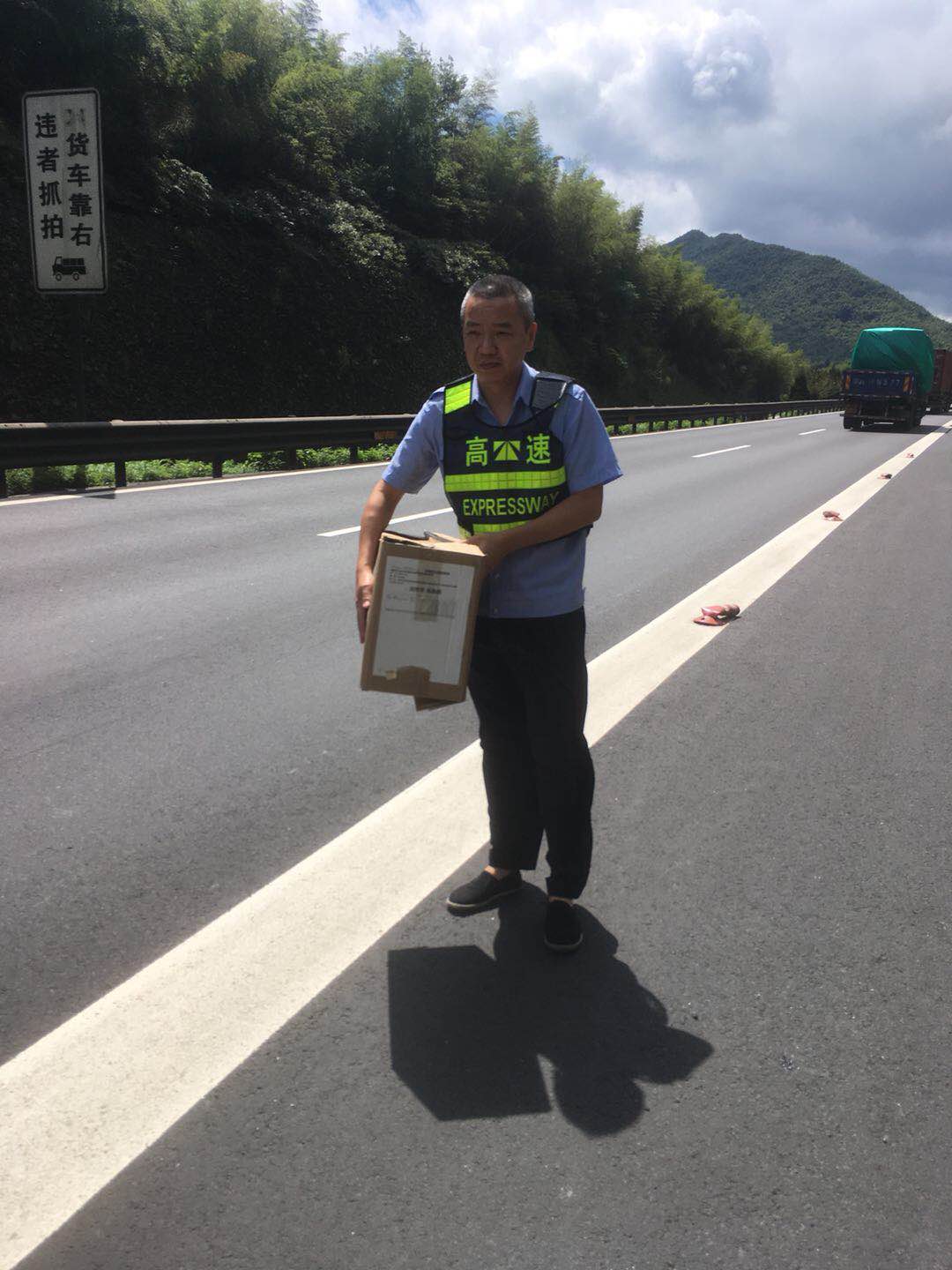 圖為執(zhí)勤隊(duì)員搬走掉落在高速車道上的快件 “可是如何歸還快件呢?快遞小哥再來取,還是寄回?” 執(zhí)勤隊(duì)員與物流公司負(fù)責(zé)人商量著。由于隧道所地處特殊位置,讓快遞小哥來隧道所領(lǐng)取肯定不方便,大家便提出將快件帶回臨海,再聯(lián)系順豐公司直接將快件寄給收件人。然而因紙箱掉落地面受過摩擦,使得快遞單破損且上面字跡變得模糊,一時無法確定相應(yīng)收貨人聯(lián)系方式。 “沒有上面的信息,物流公司怎么在堆積如山的快件中查詢到這份快件的信息呢?”執(zhí)勤隊(duì)員有點(diǎn)犯難了,他們告知物流公司物件重量,掉落地段,掉落的大致時間,并描述快件的外觀等依稀模糊的可辨特征,一次次不厭其煩的與物流公司溝通,終于根據(jù)模糊不清的外包裝相關(guān)信息確認(rèn)了收件人的聯(lián)系方式。 物流公司在收到寄出快件的運(yùn)單號時向執(zhí)勤隊(duì)員連聲道謝:“這快件里面是汽車配件,很多是不容易配齊的專有型號,多虧了執(zhí)勤隊(duì)拾得并歸還包裹,要不然丟失客戶單子賠錢挨訓(xùn)是小,影響公司名譽(yù)就麻煩了?!标?duì)長叮囑對方下次運(yùn)送快遞時一定要放好物品,并注意安全。 毛譯聆