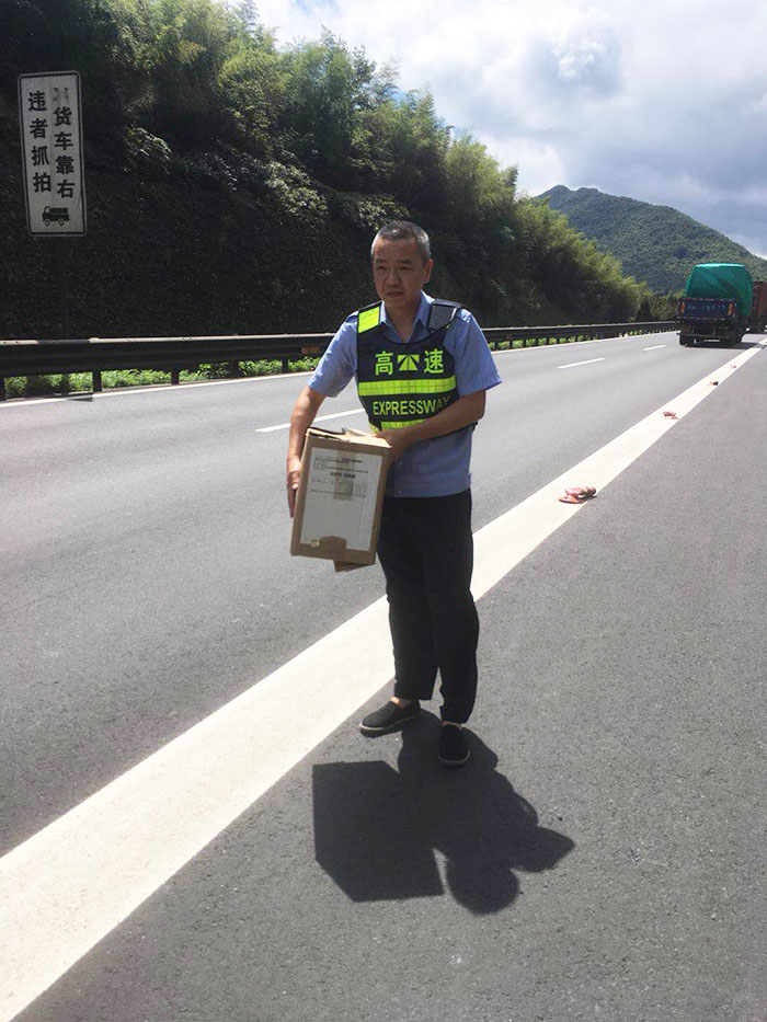 快遞車高速路上不慎丟包裹 值勤隊(duì)多方聯(lián)系歸還原主