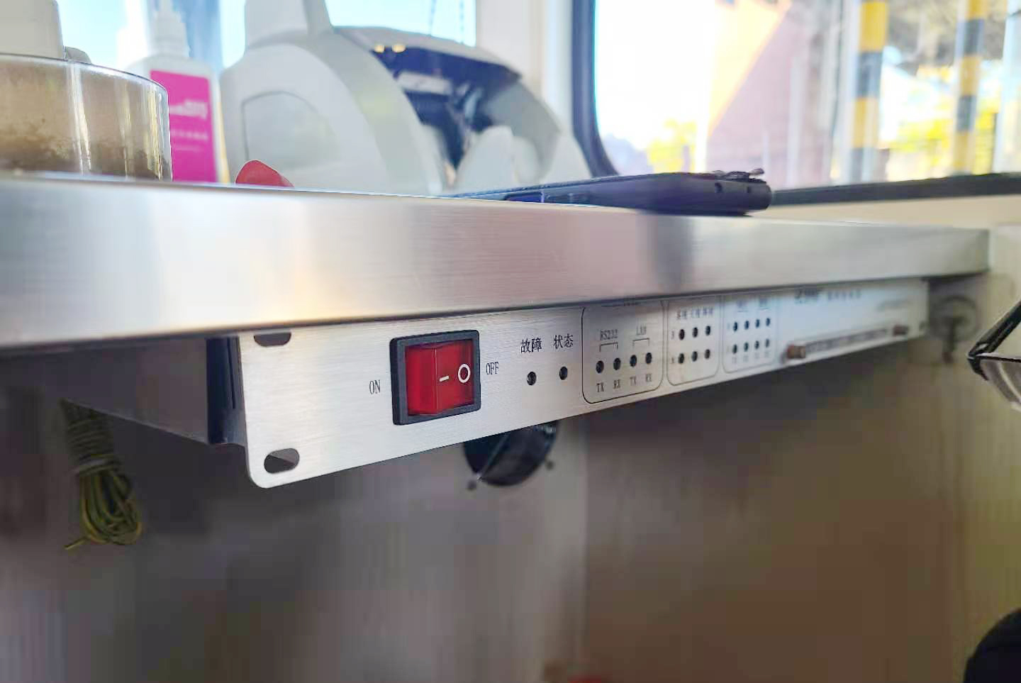 經(jīng)過中心技術人員集思廣益和反復討論,他們決定利用不銹鋼鐵片作支架,用自攻螺絲將其固定在桌面下方,隨后將控制器移至支架上,最后再在控制器后部取個圓孔,將原先桌面上的電源線、數(shù)據(jù)線等通過孔洞連接到設備上。敲定方案后,大家著手定制購買相應材料和工具,不到3天時間,集團5個收費站共計39個天線控制器全部完成“搬家”。 “這樣的設計即隱蔽又美觀,我們也可以放心打掃桌面了,以前上面連杯水都不敢放,就怕不小心弄翻時損壞設備?!迸_州收費所收費班長馬德偵對著“安家”后的天線控制器贊嘆道。 項寅曉