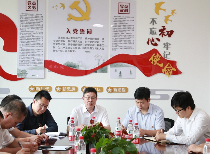 圖為陳文波一行聽取該所廉政文化建設(shè)經(jīng)驗介紹
