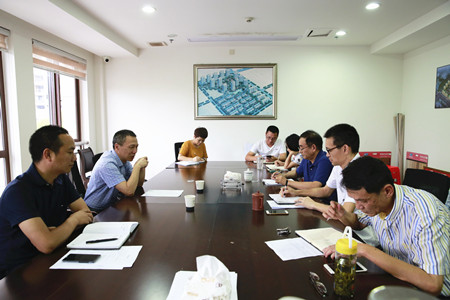 圖為集團副董事長、總經理張建平認真聽取相關人員下階段工作安排匯報